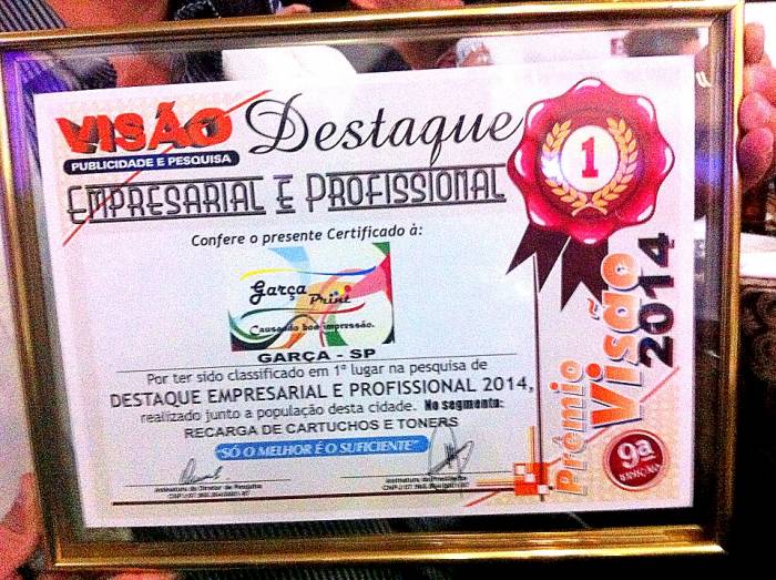 Recebeu uma premiação municipal pela qualidade dos serviços de recarga de cartucho tinta e toner laser a sua população local.